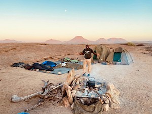 Gedurende de duur van je verblijf zul je logeren in tenten of onder de sterrenhemel.